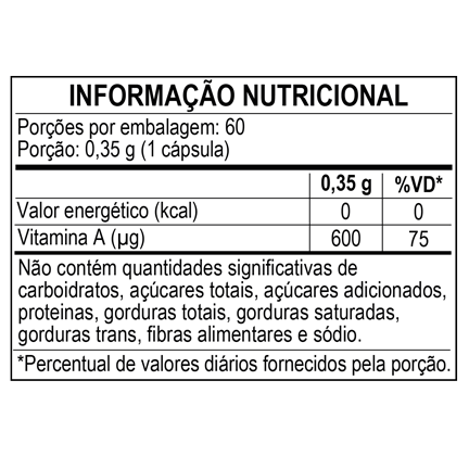 | - Este produto não é um medicamento. - Não exceder a recomendação diária de consumo indicada na embalagem. - Mantenha fora do alcance de crianças. - Este produto não deve ser consumido por gestantes, lactantes e crianças. - Manter a embalagem bem fechada e em local seco e fresco. Não expor à luz solar. Consumir em até 90 dias após aberto. PODE CONTER TRAÇOS DE GLÚTEN. | 1. Zanin, Tatiana. Alimentos ricos em betacaroteno: lista e principais benefícios. Disponível em: <https://www.tuasaude.com/alimentos-ricos-em-betacaroteno/> 2. DermaClub. Alimentos com betacaroteno: conheça os benefícios desses nutrientes para uma pele saudável. Disponível em: <https://www.dermaclub.com.br/blog/todos-os-temas/alimentos-com-betacaroteno-conheca-os-beneficios-desses-nutrientes-para-uma-pele-saudavel_a5557.html> 3. Blog Onodera. Betacaroteno ajuda mesmo no bronzeamento? Onde encontrar? Disponível em: <https://www.onodera.com.br/blog/betacaroteno/> 4. De Oliveira, C.G. Extração e caracterização do betacaroteno produzido por Rhodotorula Glutinis. Universidade Federal do Ceará, 2010. |