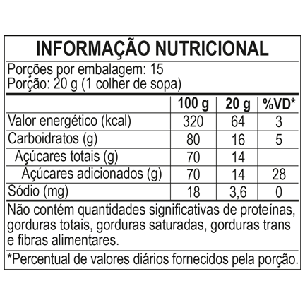 | - ESTE PRODUTO NÃO DEVE SER CONSUMIDO POR CRIANÇAS MENORES DE 01 (UM) ANO DE IDADE. - O Mel pode variar de cor, cheiro e sabor, dependendo das flores que as abelhas coletam o néctar. Todo mel de qualidade cristaliza com o tempo ou em baixa temperatura. Para voltar ao estado líquido, basta colocar em banho-maria a 45ºC. CONTÉM AROMATIZANTES. NÃO CONTÉM GLÚTEN. | 1. Terra. 6 benefícios do mel para a saúde. Disponível em: <https://www.terra.com.br/vida-e-estilo/degusta/alimentacao-com-saude/6-beneficios-do-mel-para-a-saude,9c8aa61dba0b10b668de6738921cad1co88nswfp.html> 2. Unimed Nacional. 7 tipos de mel e seus benefícios. Disponível em: <https://www.centralnacionalunimed.com.br/viver-bem/alimentacao/7-tipos-de-mel-e-seus-beneficios> 3. Fujiwara, Clarissa; Stupiello, Bruna. Mel: 7 benefícios, propriedades e opções para consumir. Disponível em: <https://www.minhavida.com.br/alimentacao/ingredientes/3181-mel> 4. Lopes, Alessandra Castilho; Silva, Alessandra Ribeiro da; Santos, Ana Carolina da Silva; Fagundes, Cássia Odete Tenório; Santana, Fernanda Caroline Galiano. Mel e suas propriedades nutricionais, 2018. Trabalho de Conclusão de Curso (Curso Técnico em Farmácia) – Etec Amim Jundi, Osvaldo Cruz, SP, 2018. |