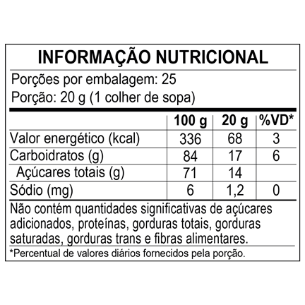 | - ESTE PRODUTO NÃO DEVE SER CONSUMIDO POR CRIANÇAS MENORES DE 01 (UM) ANO DE IDADE. - O Mel pode variar de cor, cheiro e sabor, dependendo das flores que as abelhas coletam o néctar. Todo mel de qualidade cristaliza com o tempo ou em baixa temperatura. Para voltar ao estado líquido, basta colocar em banho-maria a 45ºC. A ingestão de Mel não é recomendada para diabéticos. | 1. Terra. 6 benefícios do mel para a saúde. Disponível em: <https://www.terra.com.br/vida-e-estilo/degusta/alimentacao-com-saude/6-beneficios-do-mel-para-a-saude,9c8aa61dba0b10b668de6738921cad1co88nswfp.html> 2. Unimed Nacional. 7 tipos de mel e seus benefícios. Disponível em: <https://www.centralnacionalunimed.com.br/viver-bem/alimentacao/7-tipos-de-mel-e-seus-beneficios> 3. Fujiwara, Clarissa; Stupiello, Bruna. Mel: 7 benefícios, propriedades e opções para consumir. Disponível em: <https://www.minhavida.com.br/alimentacao/ingredientes/3181-mel> 4. Lopes, Alessandra Castilho; Silva, Alessandra Ribeiro da; Santos, Ana Carolina da Silva; Fagundes, Cássia Odete Tenório; Santana, Fernanda Caroline Galiano. Mel e suas propriedades nutricionais, 2018. Trabalho de Conclusão de Curso (Curso Técnico em Farmácia) – Etec Amim Jundi, Osvaldo Cruz, SP, 2018. |