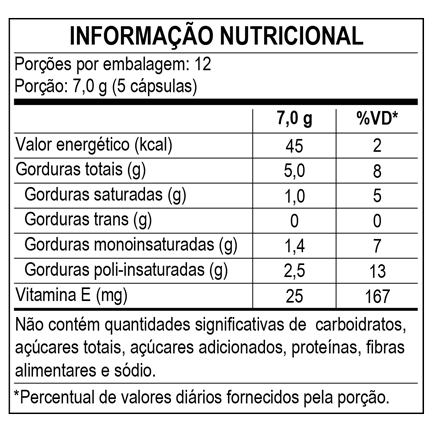 ![]() | ![]() Ingredientes Óleo de semente de abóbora (Cucurbita Pepo L.) e vitamina E (DL-alfa tocoferol acetato). Cápsula: gelatina e água purificada. Umectante: glicerina. |
