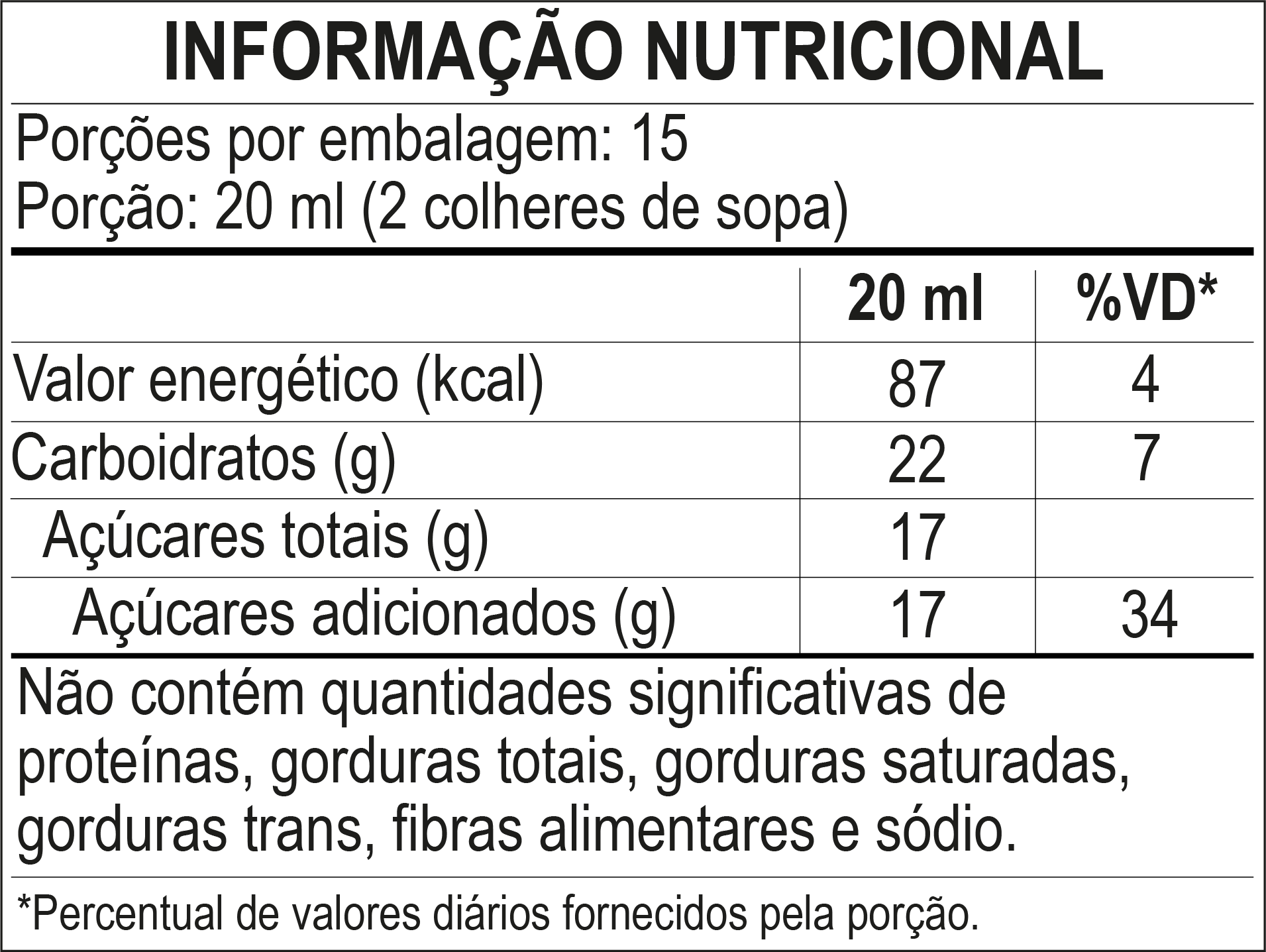 ![]() | ![]() Ingredientes Extrato de própolis, açúcar invertido, aromas naturais de alho, agrião, gengibre, poejo, eucalipto, menta e corante caramelo. |