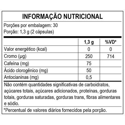 | - Este produto não é um medicamento. - Não exceder a recomendação diária de consumo indicada na embalagem. - Mantenha fora do alcance de crianças. - Este produto não deve ser consumido por gestantes, lactantes e crianças. - Manter a embalagem bem fechada e em local seco e fresco. Não expor à luz solar. Consumir em até 60 dias após aberto. NÃO CONTÉM GLÚTEN. | 1. Costa, Flávia. Picolinato de cromo: o que é, para que serve e como tomar. Disponível em: <https://www.tuasaude.com/picolinato-de-cromo/> 2. Ecycle. Os benefícios do guaraná para a saúde. Disponível em: <https://www.ecycle.com.br/guarana/> 3. Terra. Cafeína emagrece? Aprenda a utilizar o seu efeito termogênico. Disponível em: <https://www.terra.com.br/vida-e-estilo/autocuidado/cafeina-emagrece-aprenda-a-utilizar-o-seu-efeito-termogenico,23d8a1409e2626e0210aa5d755a54e5c8x5g4wav.html> 4. Viva bem. Morosil ajuda a emagrecer mesmo? O que se sabe e para que serve o extrato. Disponível em: <https://www.uol.com.br/vivabem/faq/morosil-para-que-serve.htm> |